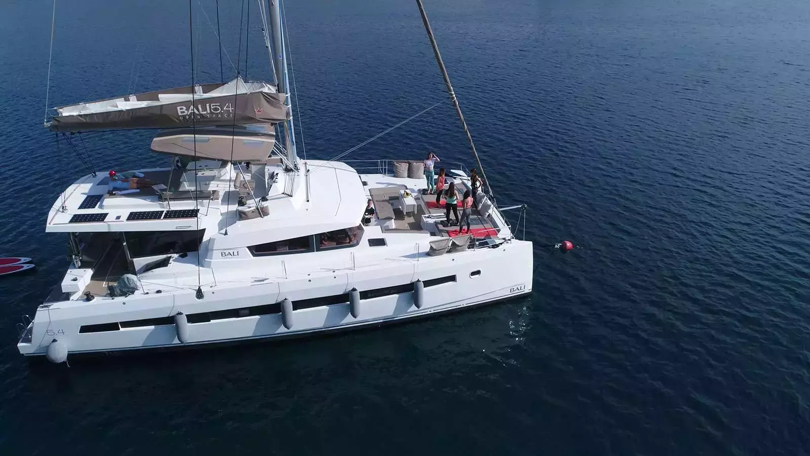 Namaste of Bali is a 56 feet sailing catamaran built in 2019 by Bali Catamarans. It has 6 cabins and sleeps 12 guests. A beautiful sailing catamaran offering more than just comfort and style, Namaste of Bali perfectly blends world-class technology with safety and entertainment in mind. For a day trip or cruise, this catamaran can accommodate a group of 12, promising relaxation and adventures along the scenic shores with your family and friends.