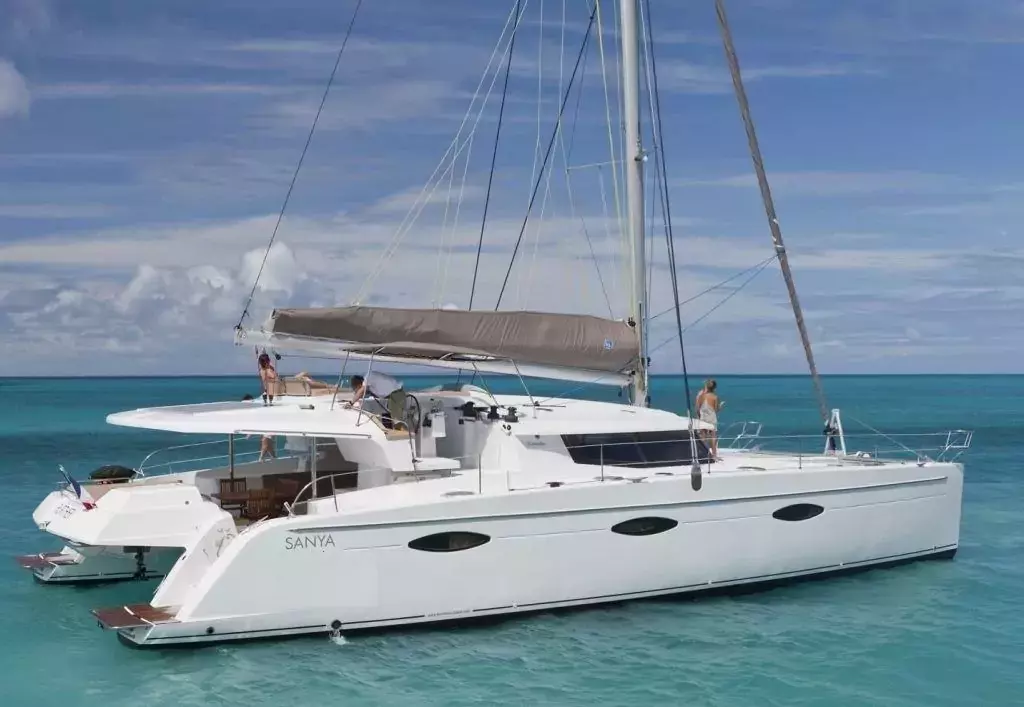 Aoibh is a 56 feet sailing catamaran built in 2014 by Fountaine Pajot. It has 4 cabins and sleeps 8 guests. A beautiful sailing catamaran offering more than just comfort and style, Aoibh perfectly blends world-class technology with safety and entertainment in mind. For a day trip or cruise, this catamaran can accommodate a group of 12, promising relaxation and adventures along the scenic shores with your family and friends.