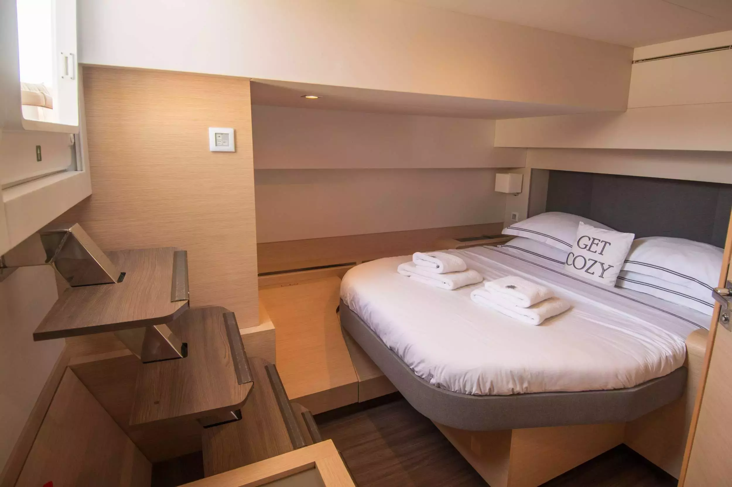 Serenissima is a 66 feet sailing catamaran built in 2019 by Fountaine Pajot. It has 5 cabins and sleeps 10 guests. A beautiful sailing catamaran offering more than just comfort and style, Serenissima perfectly blends world-class technology with safety and entertainment in mind. For a day trip or cruise, this catamaran can accommodate a group of 12, promising relaxation and adventures along the scenic shores with your family and friends.