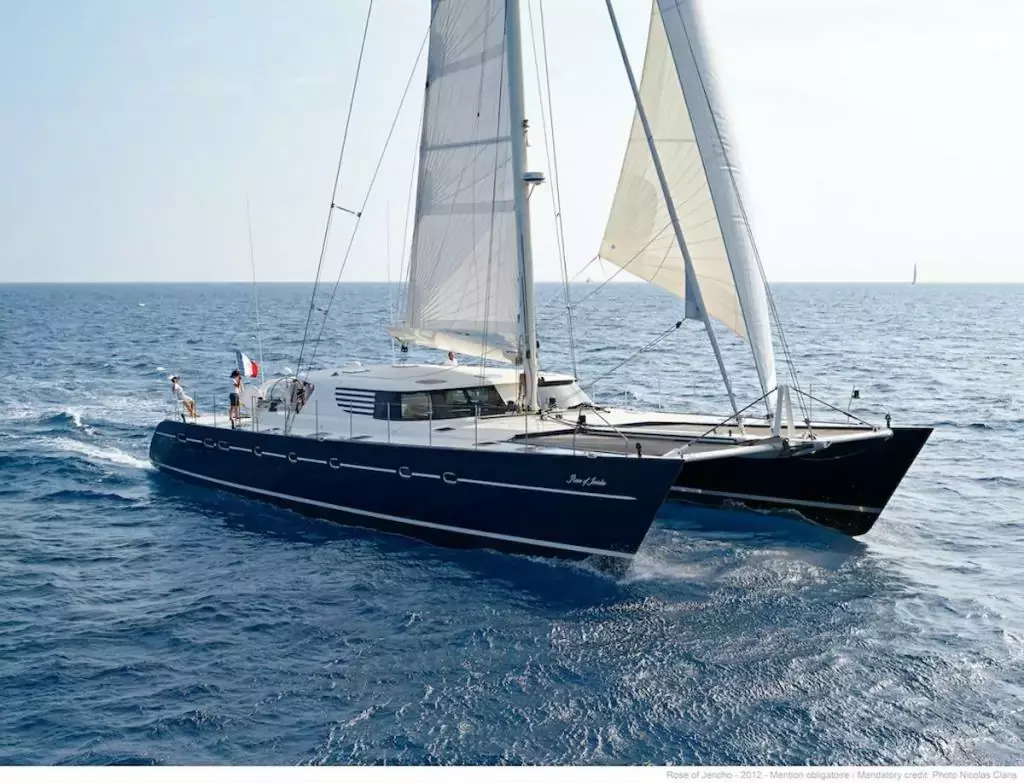 Azizam is a 85 feet sailing catamaran built in 2004 by JFA Yachts and refitted in 2018. It has 3 ensuite cabins and sleeps 6 guests. A beautiful sailing catamaran that offers more than just comfort and style, Azizam is the perfect expression of world-class technology and elegance. For a day trip or cruise, this catamaran can accommodate a group of 12, promising relaxation and adventures along scenic shores.