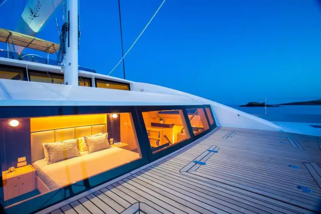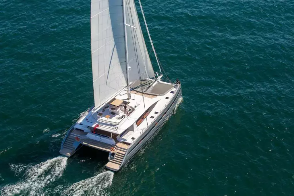 WindQuest is a 85 feet sailing catamaran built in 2014 by JFA Yachts and refitted in 2017. It has 4 ensuite cabins and sleeps 8 guests. A beautiful sailing catamaran that offers more than just comfort and style, WindQuest is the perfect expression of world-class technology and elegance. For a day trip or cruise, this catamaran can accommodate a group of 12, promising relaxation and adventures along scenic shores.