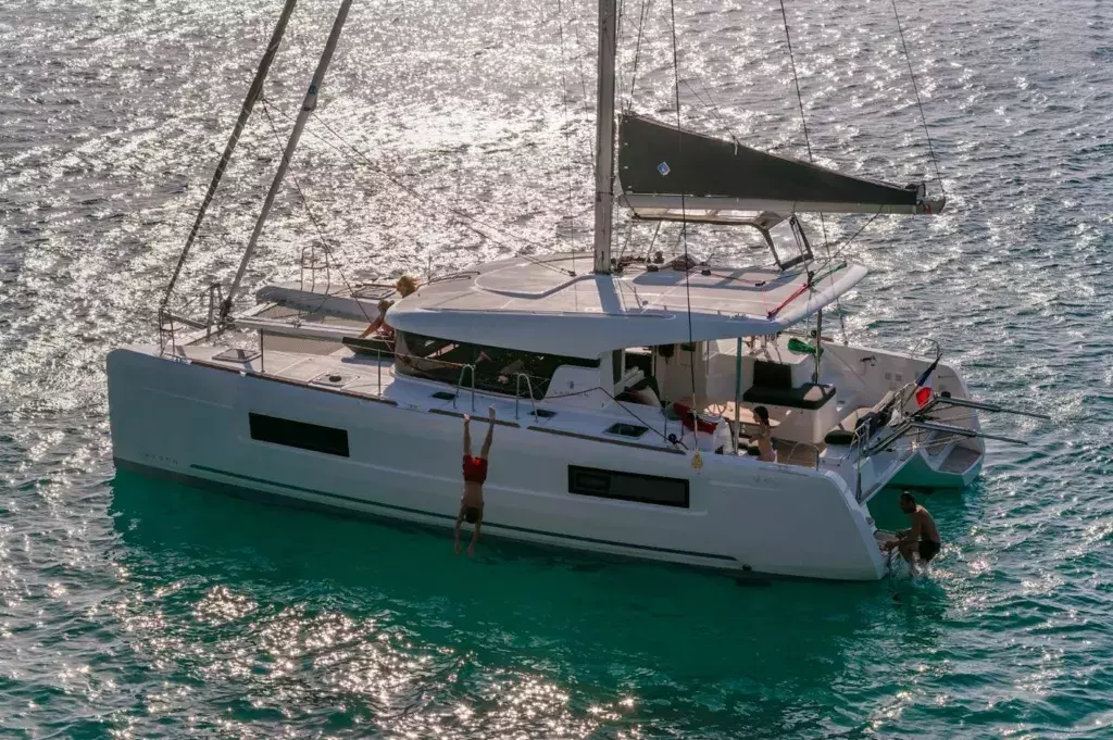 Lagoon 400 is a 39 feet sailing catamaran built in 2020 by Lagoon. It has 4 cabins and sleeps 8 guests. A beautiful sailing catamaran offering more than just comfort and style, Lagoon 400 perfectly blends world-class technology with safety and entertainment in mind. For a day trip or cruise, this catamaran can accommodate a group of 10, promising relaxation and adventures along the scenic shores with your family and friends.