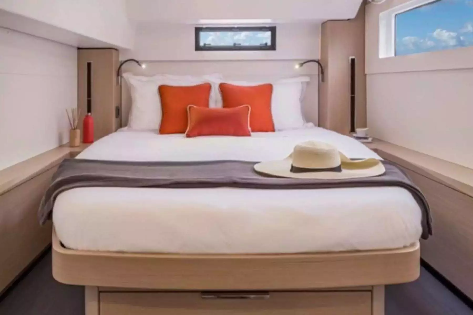 Good Mood is a 46 feet sailing catamaran built in 2021 by Lagoon. It has 2 cabins and sleeps 4 guests. A beautiful sailing catamaran offering more than just comfort and style, Good Mood perfectly blends world-class technology with safety and entertainment in mind. For a day trip or cruise, this catamaran can accommodate a group of 12, promising relaxation and adventures along the scenic shores with your family and friends.