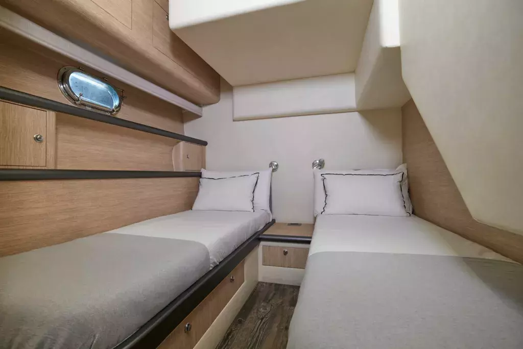 Moreover, this motor yacht has 3 cabins to accommodate 6 guests overnight or over the weekend charter to experience lengthy itineraries and further-away destinations. If you’re looking for a boat tour that is tailor-made to meet your needs, Double M is a beautiful motor yacht that will deliver.