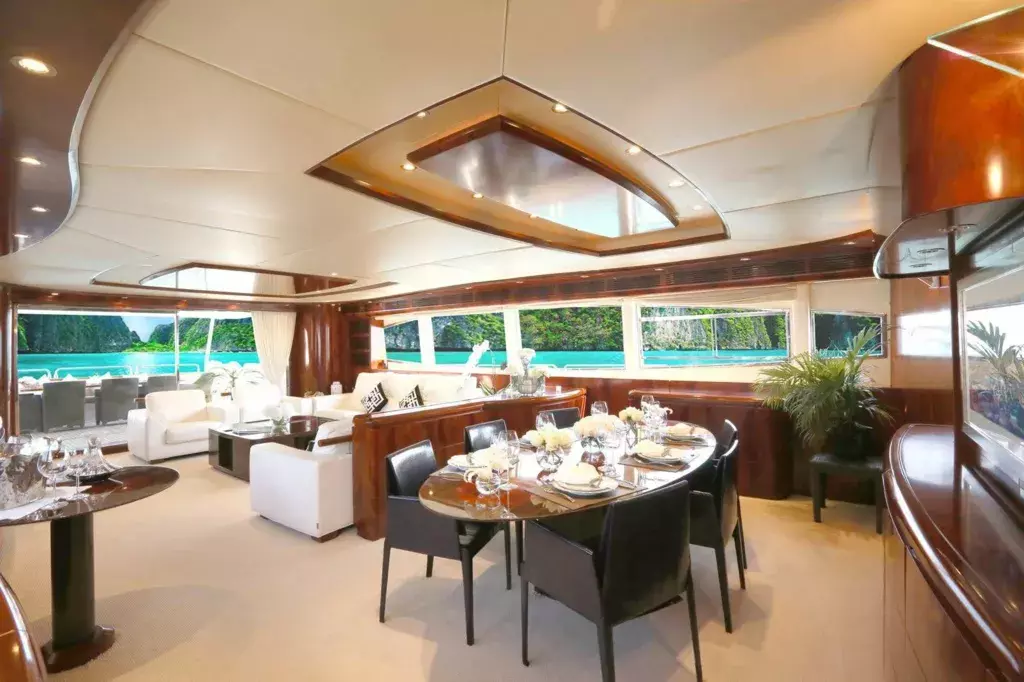 For Your Eyes Only is a 105 feet superyacht built for thrill seekers in mind. With 4 cabins, For Your Eyes Only accommodates 10 guests, and features the latest and most exhilarating water toys you can find today. Built by Astondoa in 2009 and refitted in 2024, adrenaline junkies will have the time of their lives on board this luxurious yacht fit for adventures on the seas of Southeast Asia.