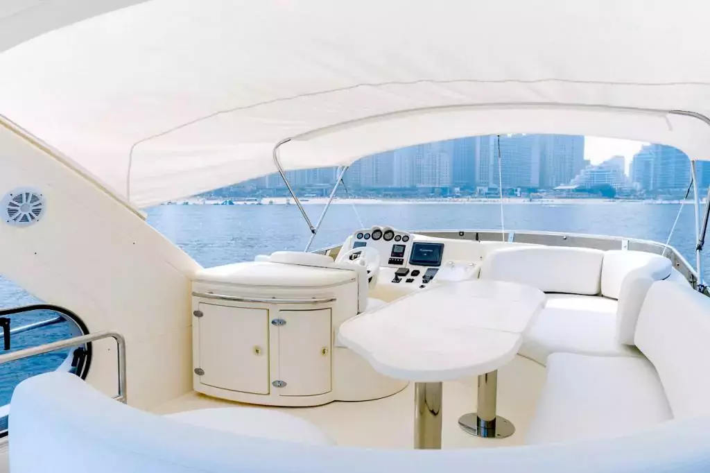 Monica is a beautiful boat that allows for a short boat tour charter along the shores. With a spacious deck that creates the perfect venue for a special celebration, or an intimate sunset cruise, Monica is a yacht that brings the genuine beauty of Arabian Gulf.