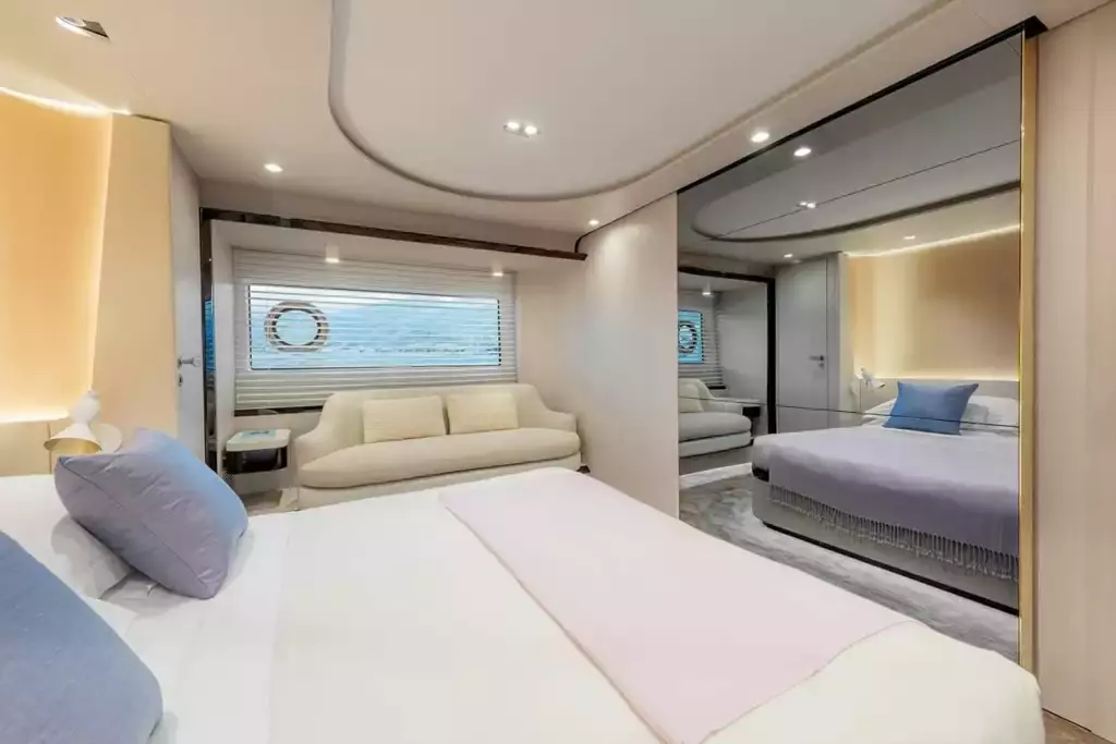 Promising contemporary luxurious comforts, AZ 78 is an epic motor yacht that is shaping the future of luxury yacht charters. From her unique exteriors down to the chic and modern interiors, the designers carefully selected the most stunning and tasteful furnishings, as well as finishes, to provide guests with relaxation and indulgence in mind.
