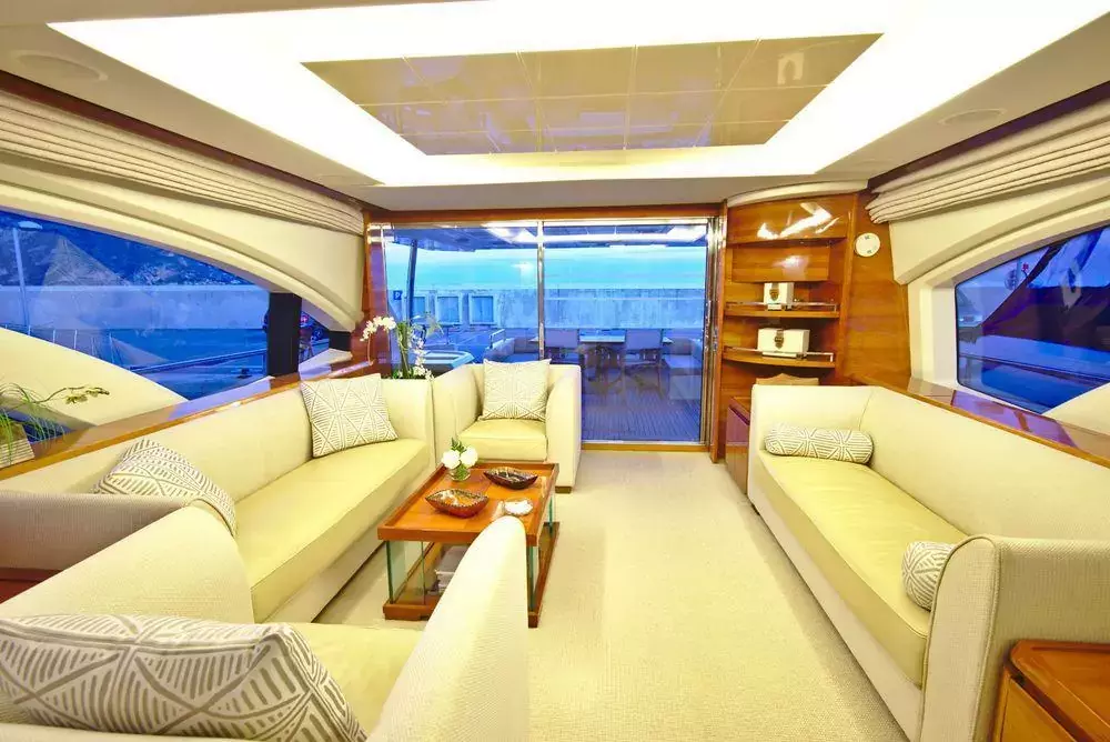 Don't Ask navigation features provide the safety, security, and smooth sailing you need for a yacht holiday that delivers. Reaching 75 feet, with an expansive deck, you and your party can enjoy endless hours of fun, entertainment, and adventure. Whether you choose to enjoy an alfresco dinner, watch the most beautiful sunsets on the horizon with a glass of champagne in hand, or take out the water toys for exciting water sport activities, Don't Ask will offer you all kinds of festivities onboard and out on the waters or on the islands you visit.