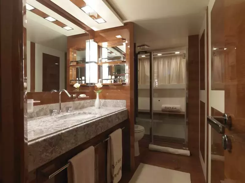 Don't Ask was built for the discerning traveler in mind, specifically those who want to enjoy the waters of Mediterranean with their family and loved ones in tow. On deck, a world of possibilities awaits. From alfresco dining to outdoor BBQs, or simply sunbathing on deck, adults can relax on board while teenagers can enjoy a plethora of activities out on the water. For a day trip or cruise, the yacht offers entertainment features to celebrate your special event on water, while cruising the stunning coasts and exotic islands.