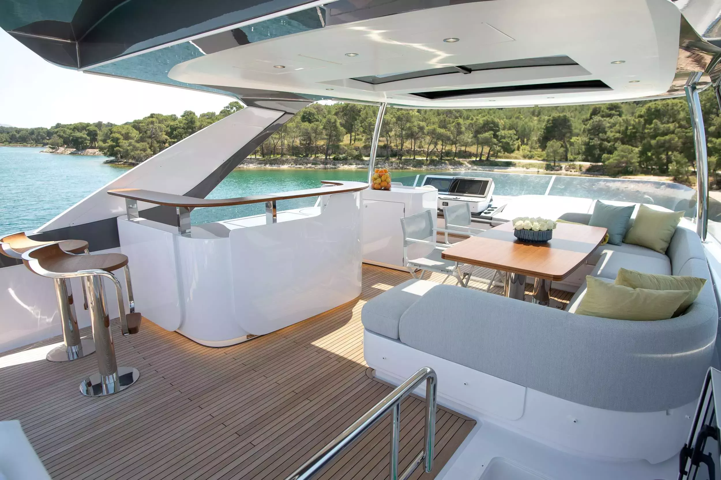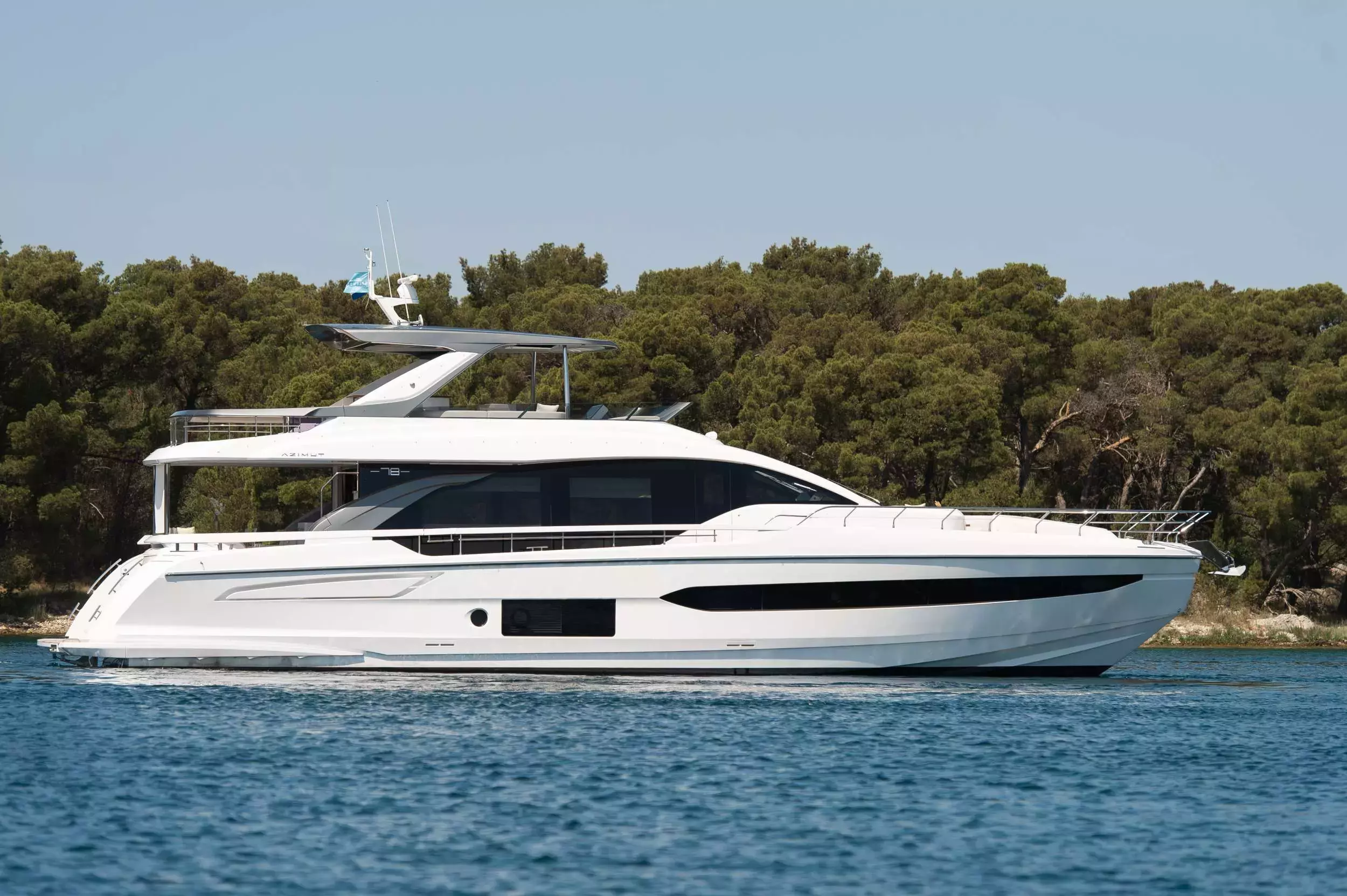 Designed and built with love by Azimut, the luxury motor yacht Prewi was launched in 2021 complete with ultramodern technology and innovative features, delivering a yacht holiday with an extraordinary comfort. Prewi spans 75 feet of luxurious living space and playground above water. With 4 cabins that sleep 8 guests and accommodating up to 18 people on a day charter with a professional crew of 3, Prewi will exceed your expectations.