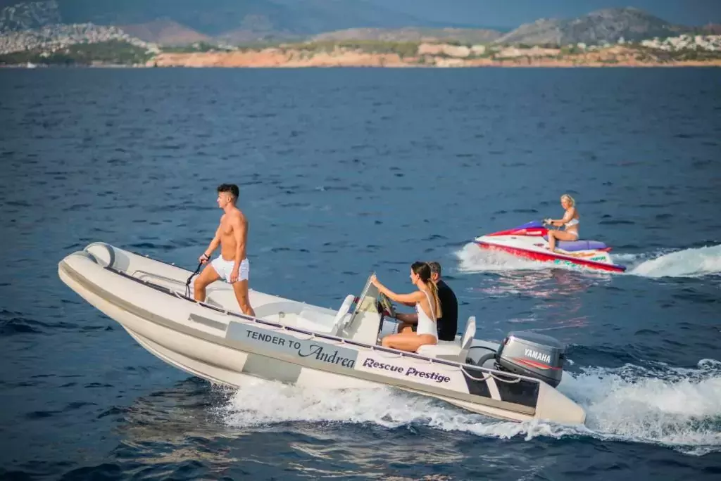 Guaranteeing to enhance your charter experience, the full arsenal of water toys and equipment in Andrea provides you with entertainment, excitement, and countless days of fun and adventure on water. Besides traditional water sports, this superyacht offers personal watercraft that includes Seadoo Jet Ski . This collection of action-packed amenities make Andrea the yacht of choice exhilarating pursuits.