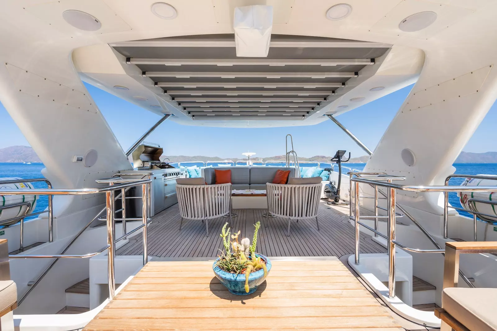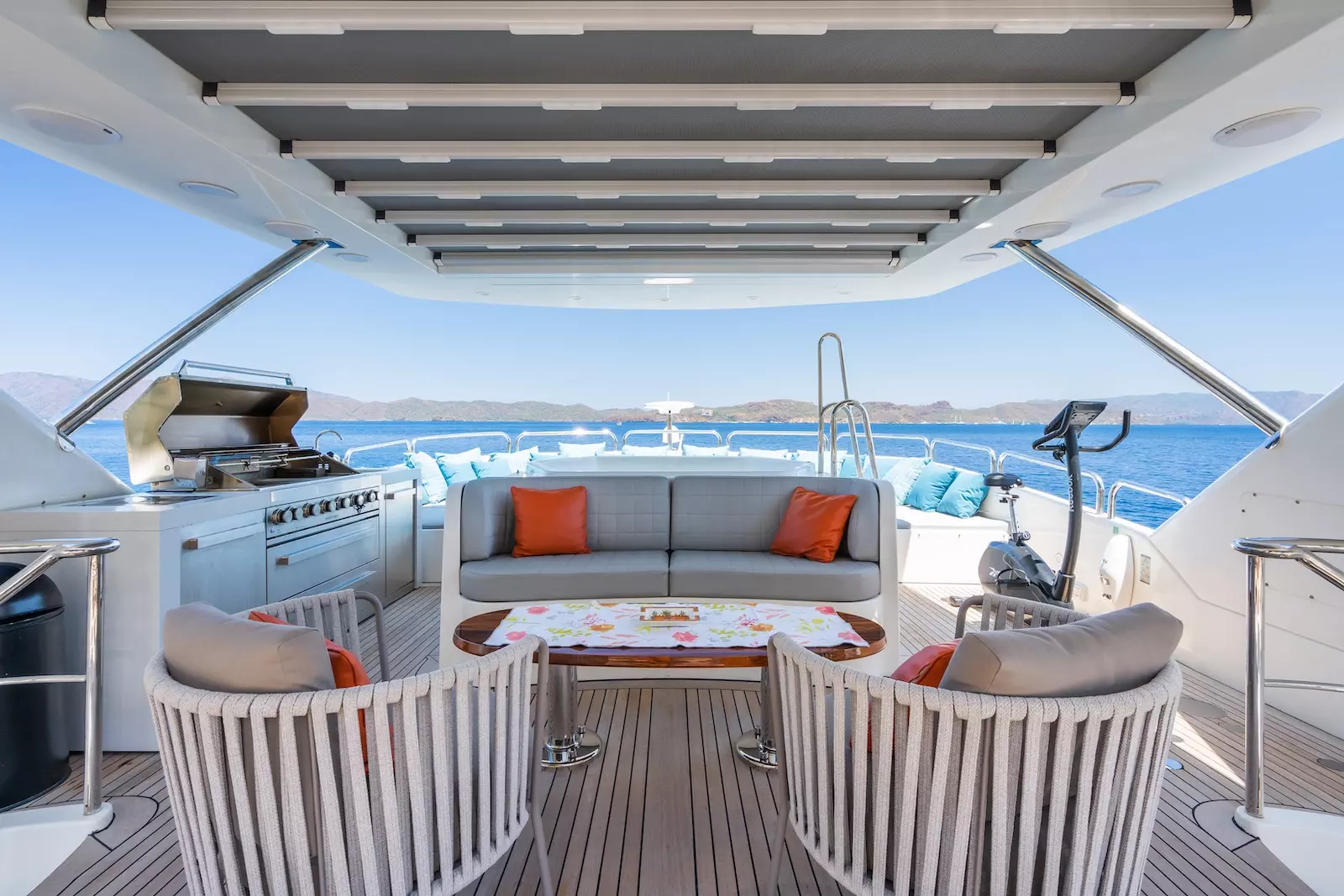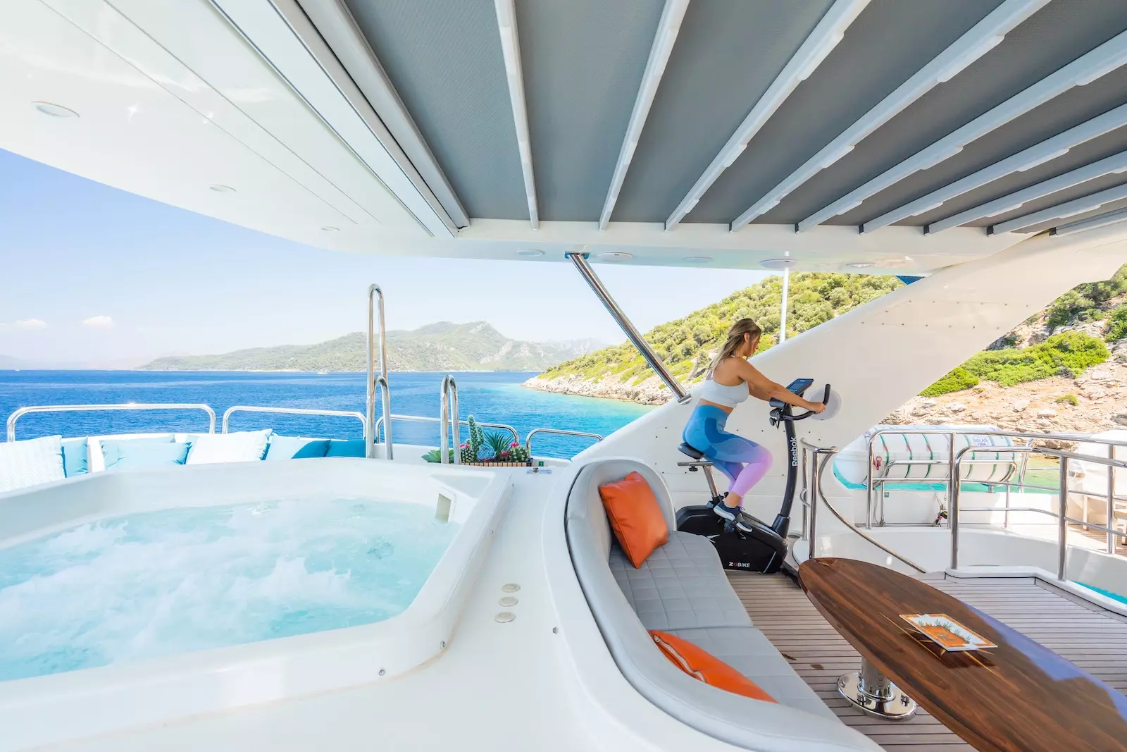 While on board bask in the sun on the decks relax in the jacuzzi. Catch a movie in the yachts private cinema. Fitness enthusiasts can stick to their workout routines in the cutting edge gym facility. Food enthusiasts will be treated to dishes prepared by our onboard chef; from snacks to elaborate multi course meals.