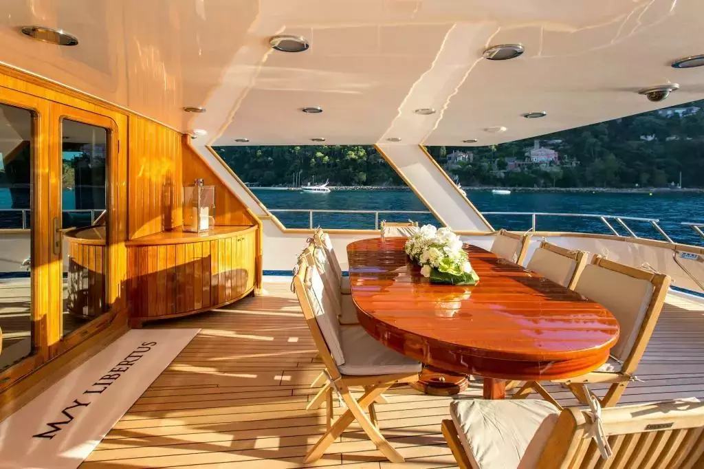 Libertus is a grand motor yacht built in 1975 and refitted in 2015. Built by Benetti and having a length of 98 feet, Libertus features 5 cabins and sleeps 9, or takes up to 12 guests for a day trip with a friendly crew of 4. Packed with features that make an unforgettable yacht charter in Mediterranean, Libertus offers you tailor-made yacht holidays you’ll never forget.