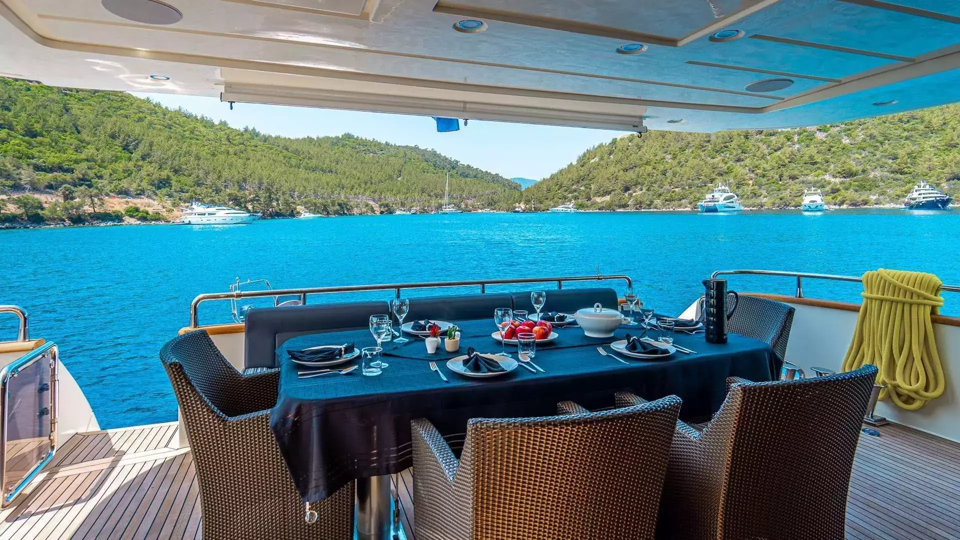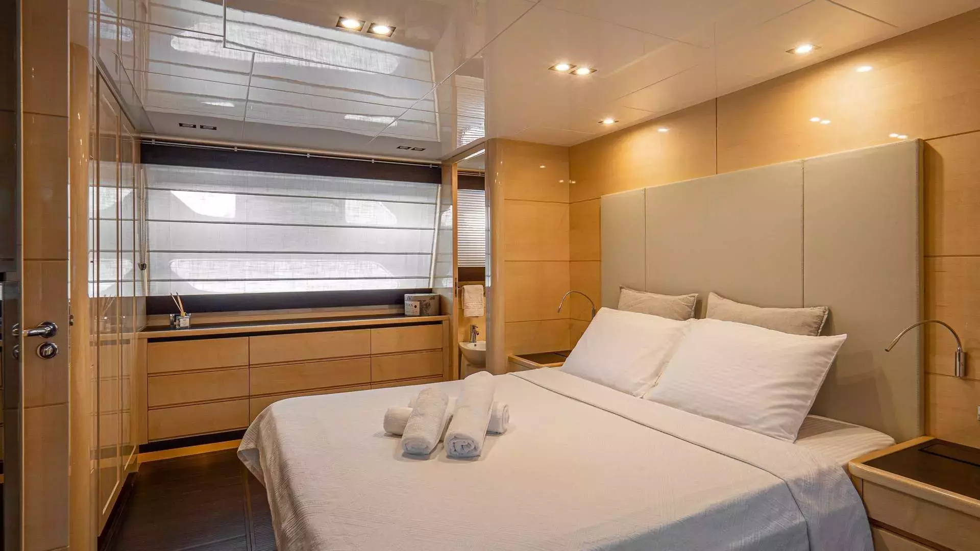 Featuring ample deck space offering opportunities for both recreation and relaxation. Spend your evenings indulging in comfort and luxury within the ensuite cabins of your own. Liberata stands out as a motor yacht charter known for its top notch amenities and exceptional service. And it offers an array of cutting-edge water toys!