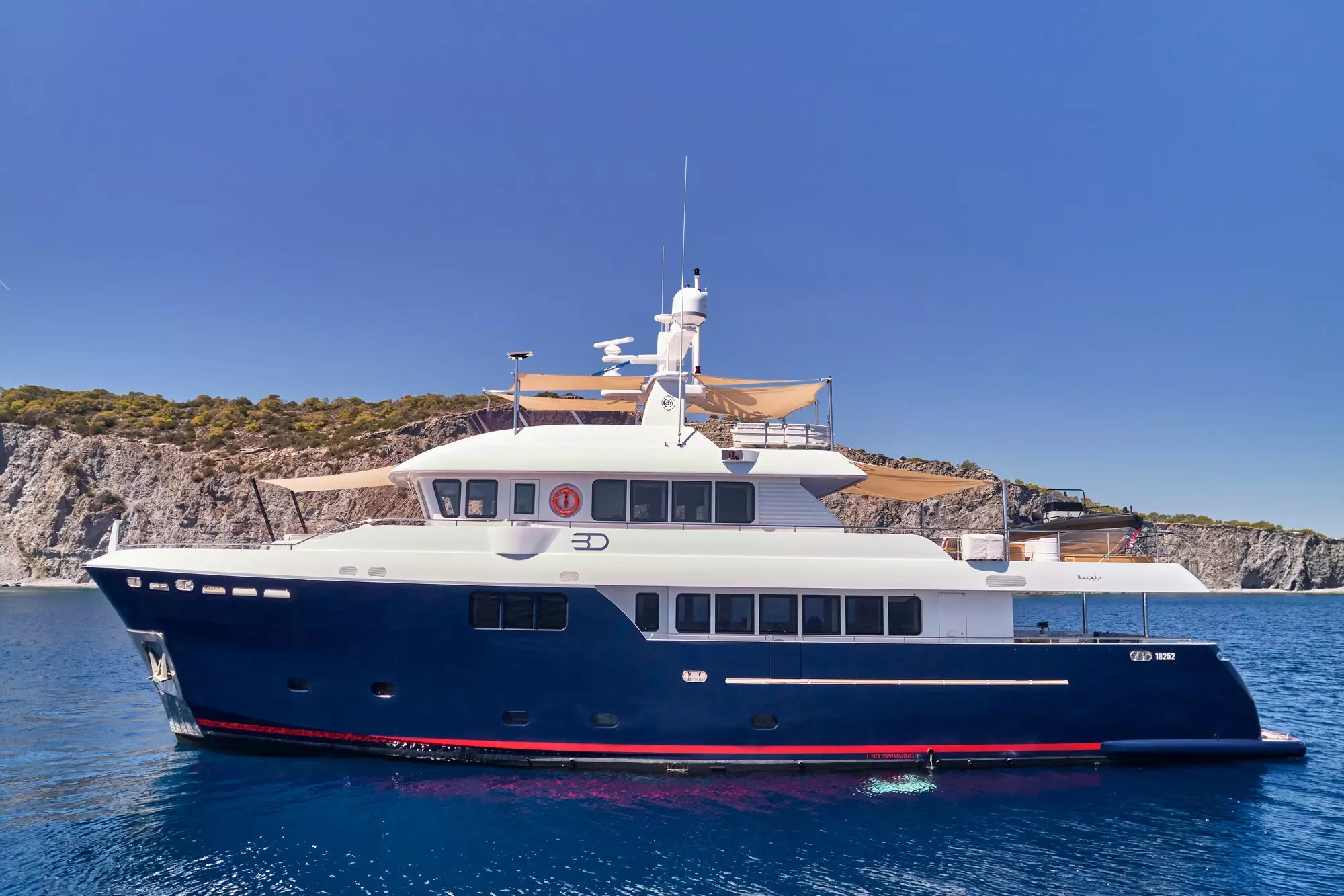 Perfect for those seeking adventure, 3D is a choice for yacht charters. Fitted with state of the art technology this yacht ensures a stress-free cruising journey, allowing you to plan and customize your holiday to your own liking in the scenic waters of Mediterranean