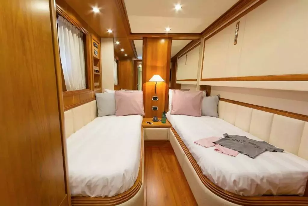 Step on board and you’ll immediately fall in love with every inch of this yacht. From the lavish exteriors to the lush interiors that spell out comfort and luxury, you will automatically feel at home. Take your pick from the 4 cabins, where you’ll enjoy privacy and comfort after a long day of island hopping, water activities, and exploration.