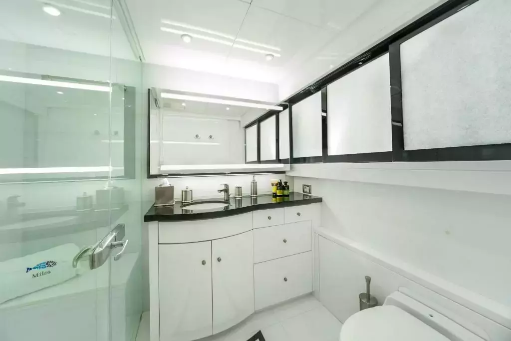 With a spacious deck that presents plenty of opportunities for both fun and relaxation, take your pick from the countless toys that you can enjoy on water, underwater, and on land. And to top it all off, you can end the day in comfort and pampering in your very own spacious, and exclusive ensuite cabins. Milos at Sea is a beautiful motor yacht charter highlighted with luxury amenities and impeccable service.