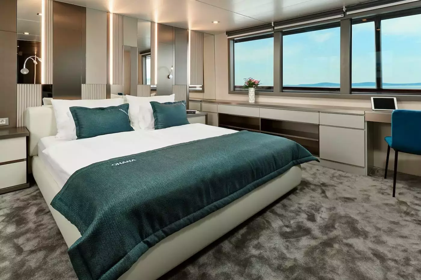 In addition, Ohana can take 20 guests on a day charter for special celebrations with a professional and dedicated crew of 10. Step on board and you’ll immediately fall in love with all the spaces designed to offer maximum comfort and enjoyment.