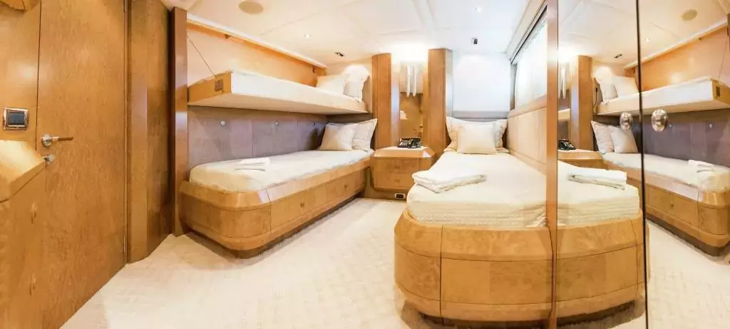 Benita Blue comes with a team of 5 crew members who are dedicated to provide an exceptional experience for all guests on board. She features 4 cabins that can accommodate up to 10 guests, this motor yacht sails through the serene waters of Mediterranean.