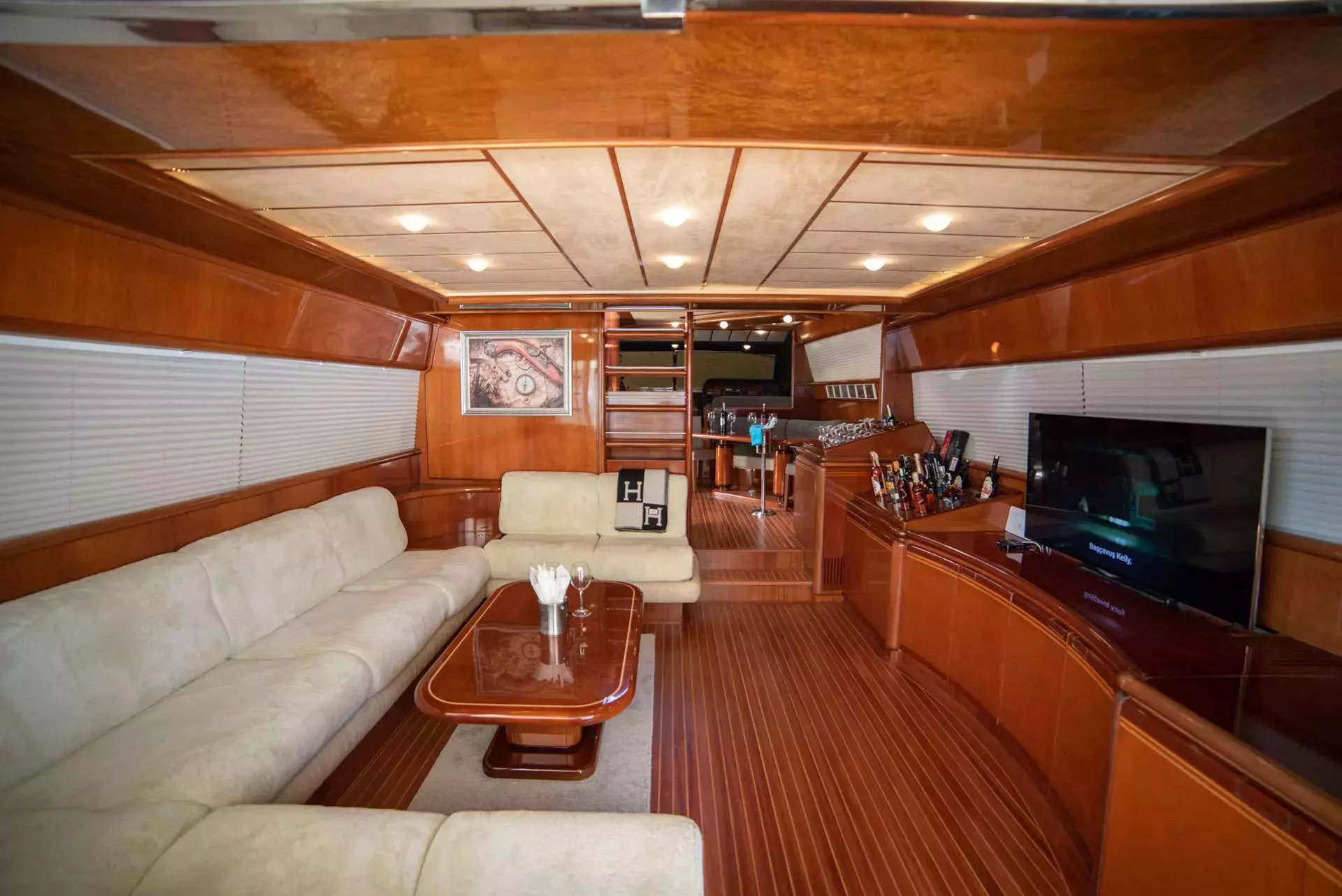 Hurrem is a grand motor yacht built in 1996 and refitted in 2021. Built by Ferretti and having a length of 72 feet, Hurrem features 4 cabins and sleeps 8, or takes up to 18 guests for a day trip with a friendly crew of 3. Packed with features that make an unforgettable yacht charter in Mediterranean, Hurrem offers you tailor-made yacht holidays you’ll never forget.