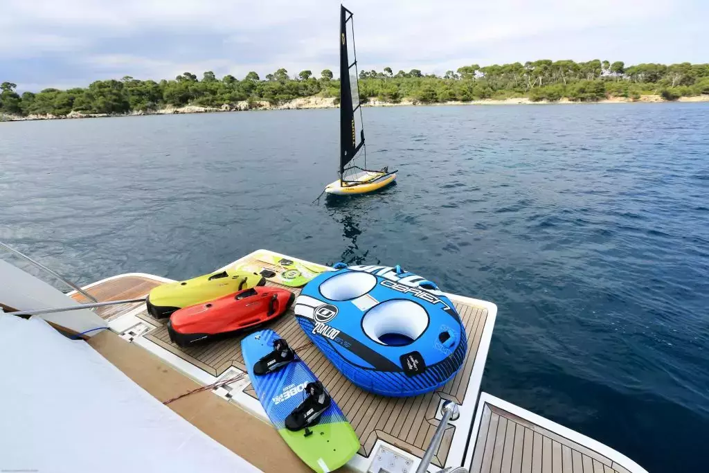Guaranteeing to enhance your charter experience, the full arsenal of water toys and equipment in Onyx provides you with entertainment, excitement, and countless days of fun and adventure on water. Besides traditional water toys, Onyx offers personal watercraft that includes Two Seabobs. This collection of action-packed amenities makes Onyx the yacht of choice for exhilarating pursuits.