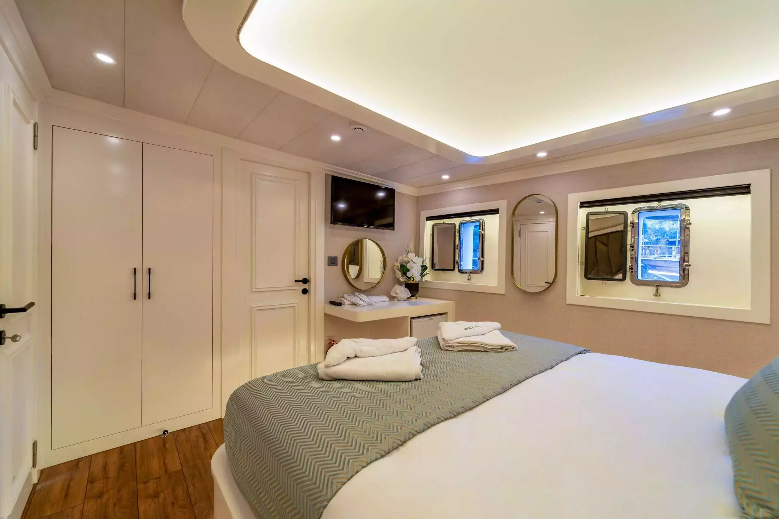 Queen of Makri is a luxury sailing yacht that offers the perfect yacht charter holiday. With 6 cabins, you can retreat to your private space at the end of a full-day of water sports, exploration, and adventure. The deck features Swim Platform, which creates the perfect interaction of many elements. Step below deck and you’ll discover the expert craftsmanship that Fethiye Shipyard is known for.