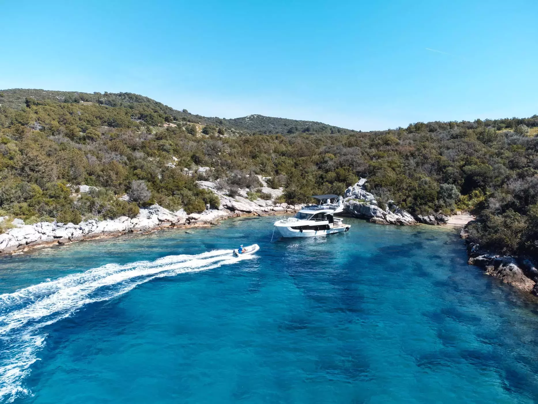 Charter FG Star mini in the Split and embark on an unforgettable voyage to Croatia, Montenegro. Uncover secluded bays, indulge in cuisine, visit historical sites and soak in stunning natural landscapes. Take your time island hopping while creating memories that will stay with you forever. Whether you're looking for an escape, a family holiday or an exciting journey, with friends FG Star mini motor yacht definitely offers an experience.