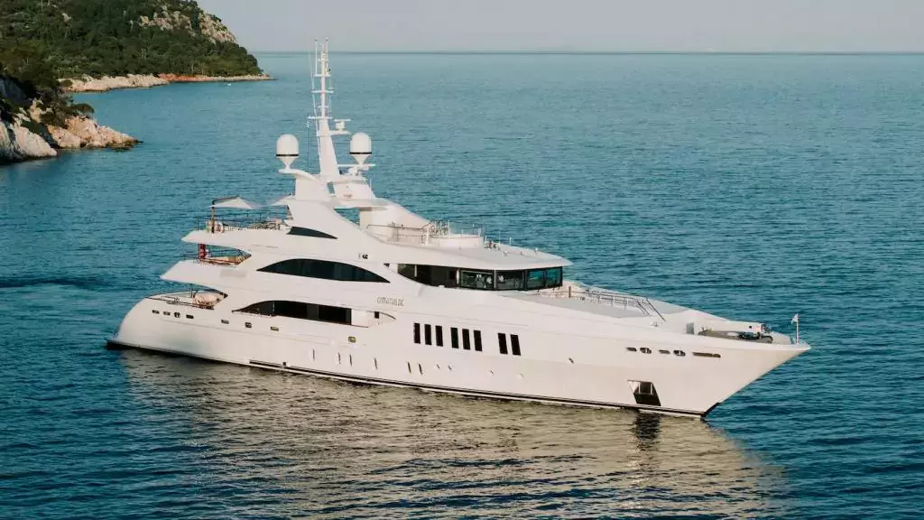 O'Mathilde is a 184 feet superyacht featuring state-of-the-art, cutting edge technology, and the latest modern advances in yacht building. With 7 cabins, it sleeps 12 guests and accommodates up to 14 people on a day charter with a professional crew of 12. Built by a renowned builder, Golden Yachts, the superyacht O'Mathilde was launched in 2018 complete with ultramodern technology and innovative features.