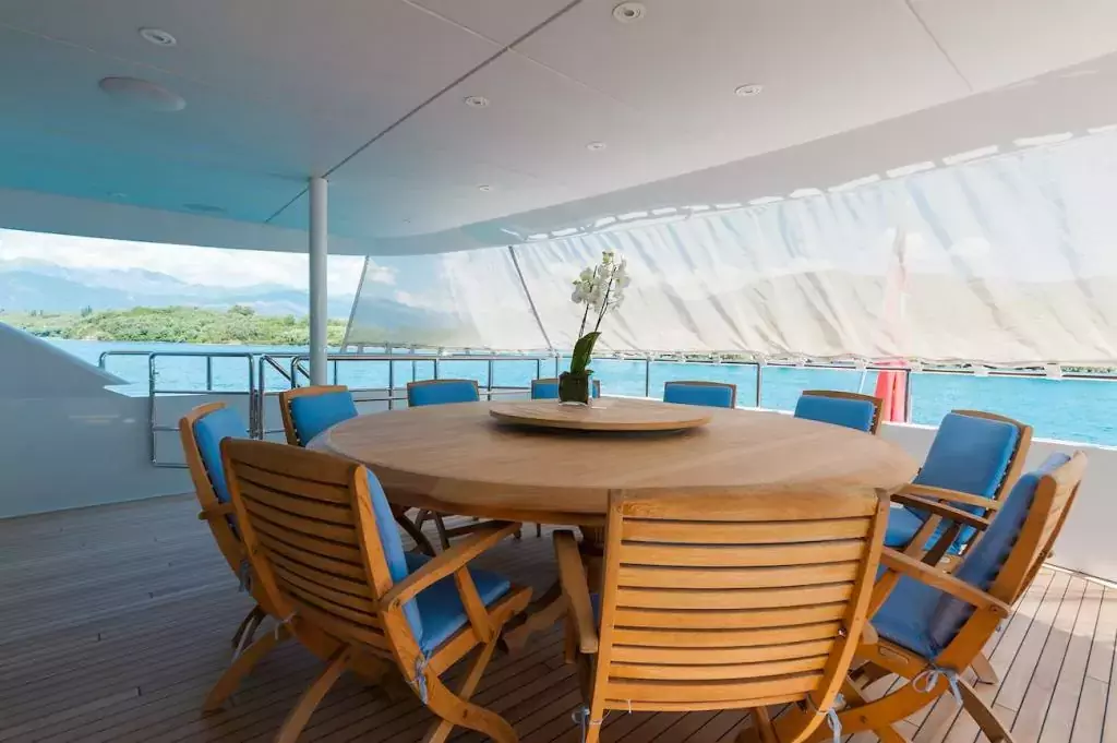 With a spacious deck that presents plenty of opportunities for both fun and relaxation, take your pick from the countless toys that you can enjoy on water, underwater, and on land. And to top it all off, you can end the day in comfort and pampering in your very own spacious, and exclusive ensuite cabins. Duke Town is an epic superyacht charter adventure highlighted with luxury amenities and impeccable service.