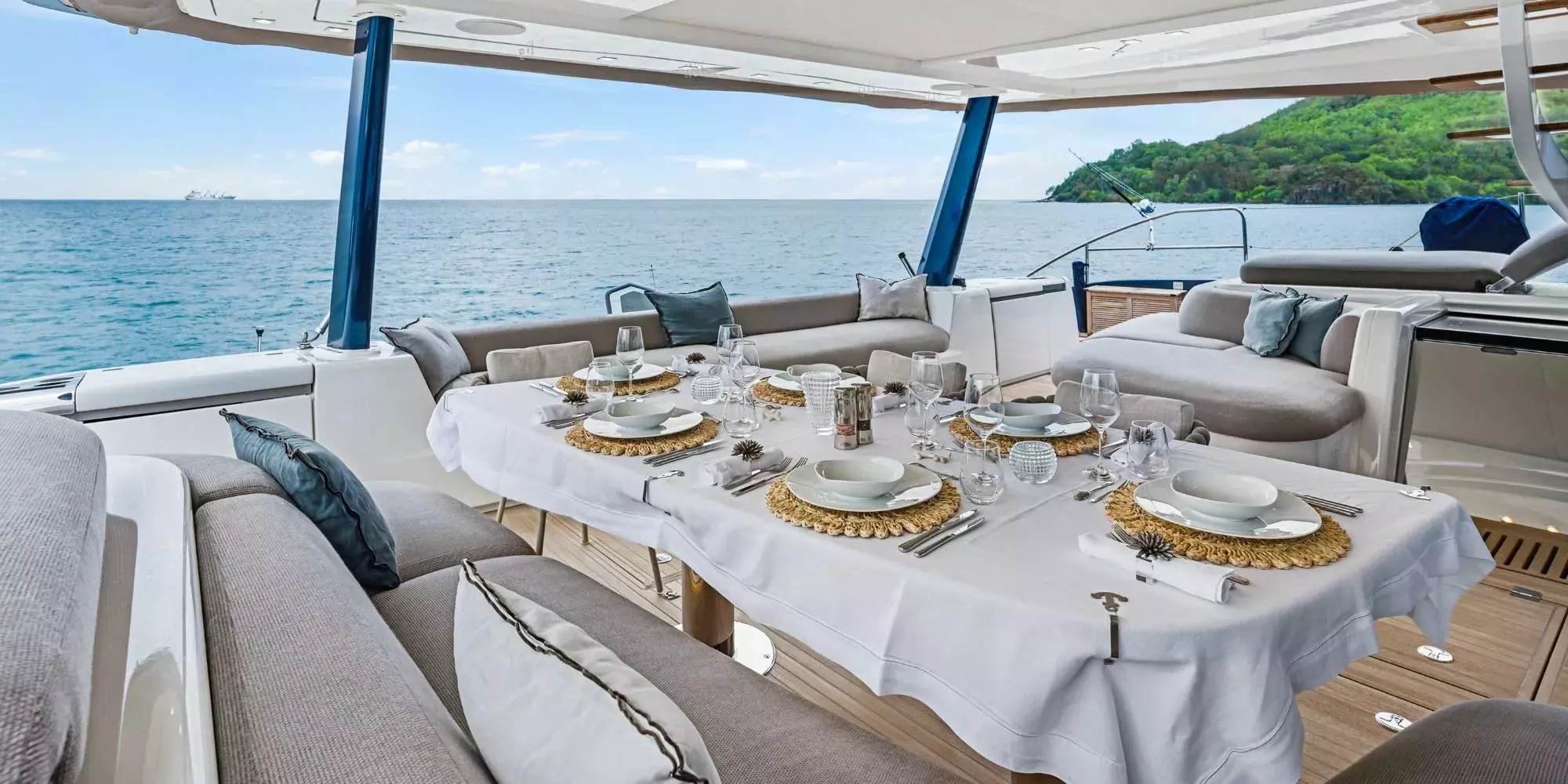 Usually operating from Mahe and with no rush to complete an itinerary, time slows down on board Mane et Nocte. With a luxury catamaran charter in Caribbean and Indian Ocean, Mane et Nocte ensures ultimate comfort, timeless features, and the perfect combination of performance and luxury.