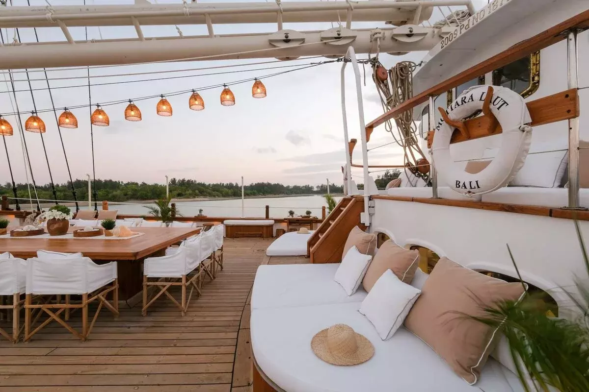 Step aboard Mutiara Laut. Indulge in a world of comfort and elegance. Its sleek exterior design and opulent interior décor make it an ideal choice for voyages or leisurely sailing trips. The spacious living areas and appointed suites provide a retreat after each days adventures catering to those seeking the ultimate experience and exquisite staterooms and a Spa onboard.