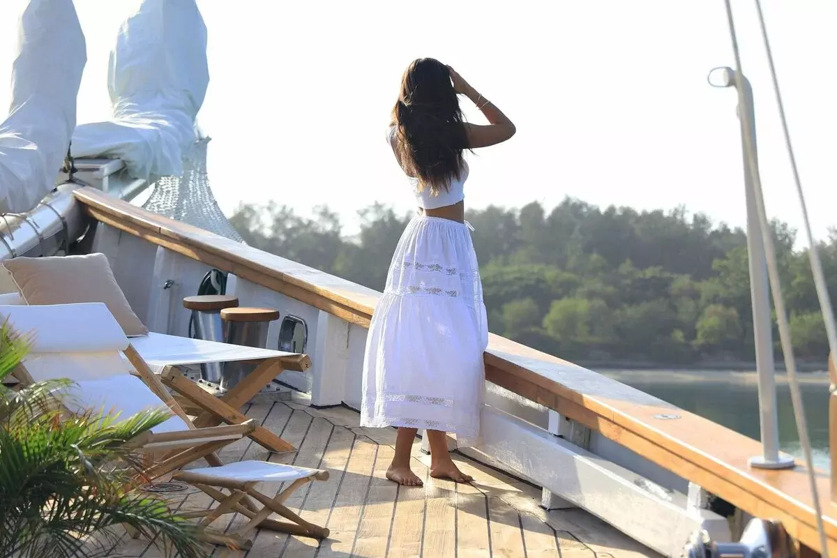 While on board bask in the sun on the decks relax in the jacuzzi. Catch a movie in the yachts private cinema. Fitness enthusiasts can stick to their workout routines in the cutting edge gym facility. Food enthusiasts will be treated to dishes prepared by our onboard chef; from snacks to elaborate multi course meals.