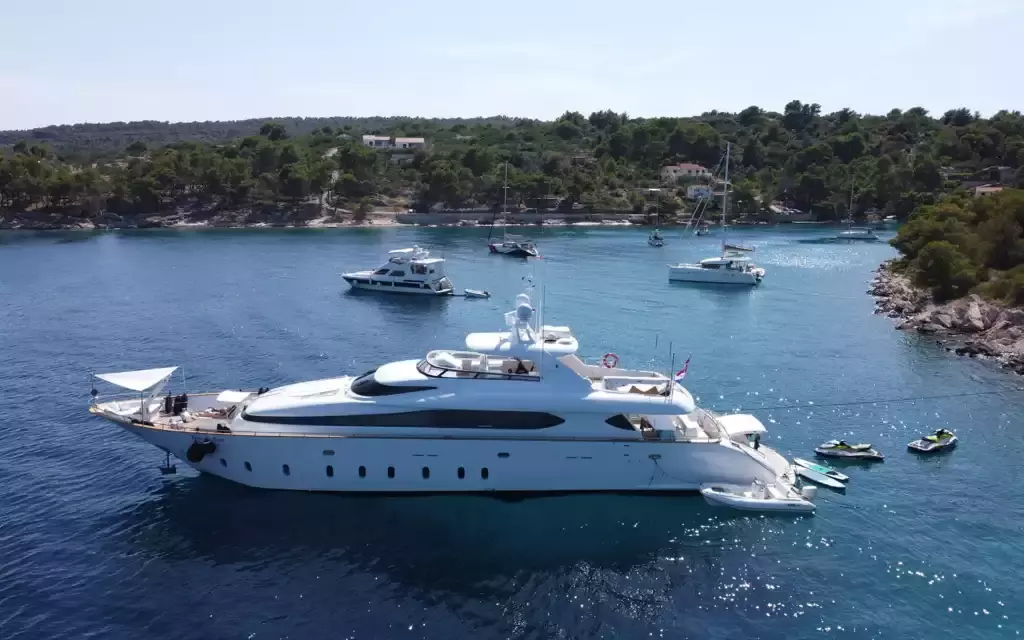 Tuscan Sun is 105 feet luxury motor yacht that is in high demand for many reasons. With 10 cabins, Tuscan Sun accommodates 5 guests, and features the latest and most exciting water toys you can find today. Built by Maiora in 2008 and recently refitted in 2021, adrenaline junkies will have the time of their lives on board this luxurious yacht fit for adventures on the seas of Mediterranean.
