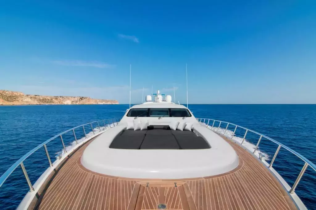 Four Friends is a grand motor yacht built in 2002 and refitted in 2015. Built by Mangusta and having a length of 112 feet, Four Friends features 4 cabins and sleeps 8, or takes up to 14 guests for a day trip with a friendly crew of 5. Packed with features that make an unforgettable yacht charter in Mediterranean, Four Friends offers you tailor-made yacht holidays you’ll never forget.