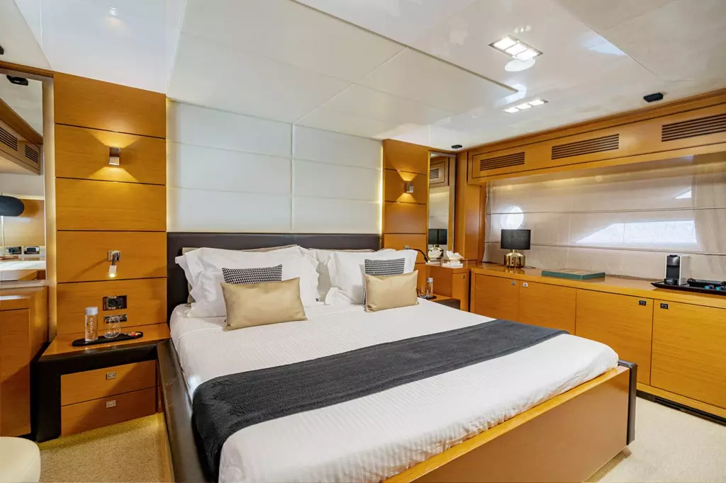 Enjoy is 79 feet luxury motor yacht that is in high demand for many reasons. With 4 cabins, Enjoy accommodates 8 guests, and features the latest and most exciting water toys you can find today. Built by Marco Polo in 2012 and recently refitted in 2015, adrenaline junkies will have the time of their lives on board this luxurious yacht fit for adventures on the seas of Mediterranean.