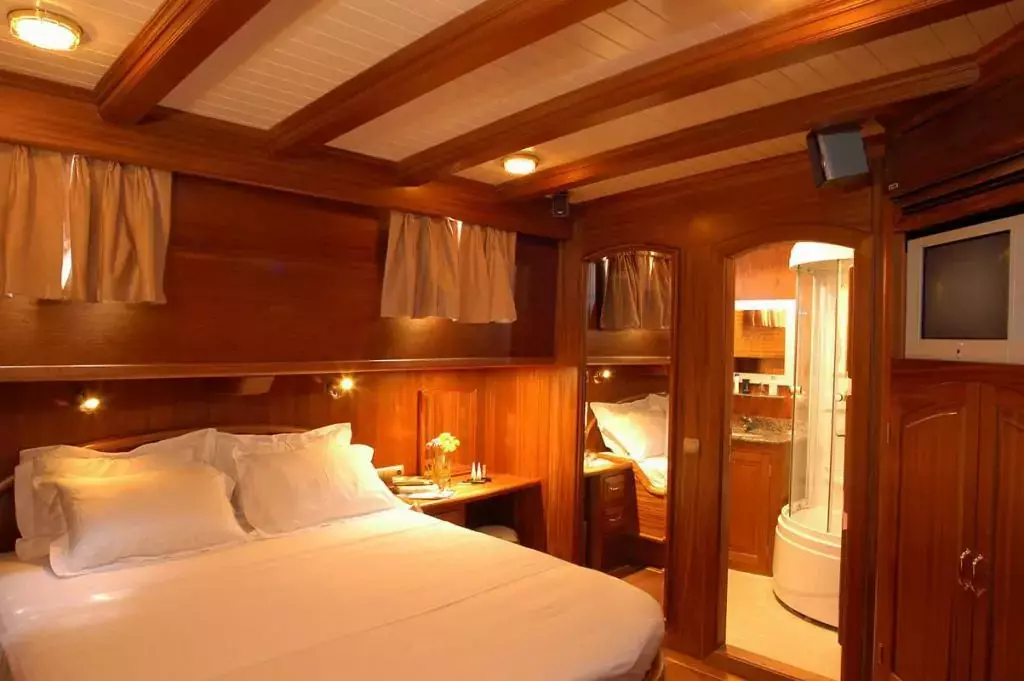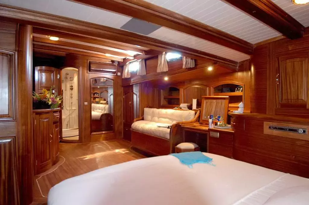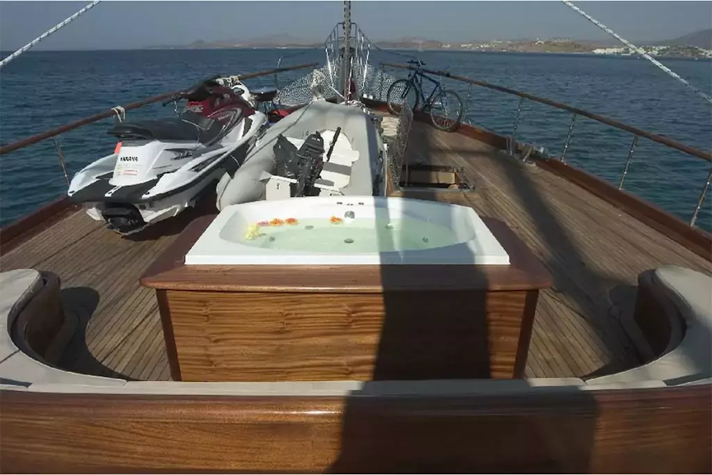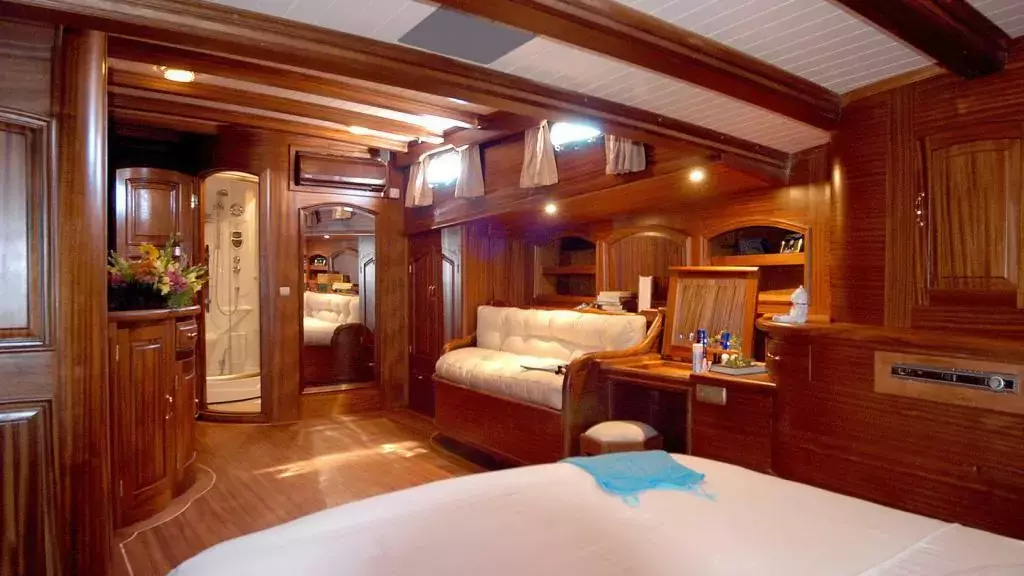 Queen Of Karia is a luxury sailing yacht that perfectly combines the elements for a yacht charter holiday. With 5 cabins, you can retreat to your private space at the end of a full-day of water sports, exploration, and adventure. Enjoy a sailing holiday without sacrificing your fitness and active lifestyle, while your cohorts are out relaxing on deck, watching a movie, or taking naps - Queen Of Karia features satisfy the best of both worlds.