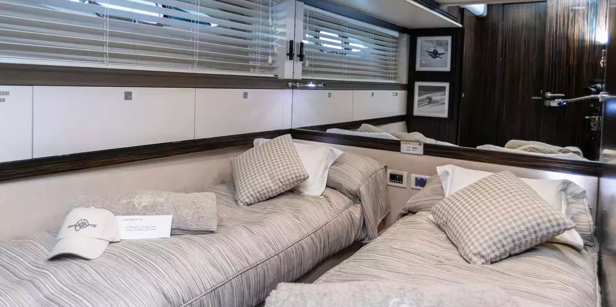 Furthermore this luxurious motor yacht can also accommodate 8 in 4 cozy cabins to those opting for a weekend getaway to explore destinations and embark on extensive journeys. If you desire a boat trip tailored to your preferences look no further than Ammonite a vessel designed to exceed your expectations.