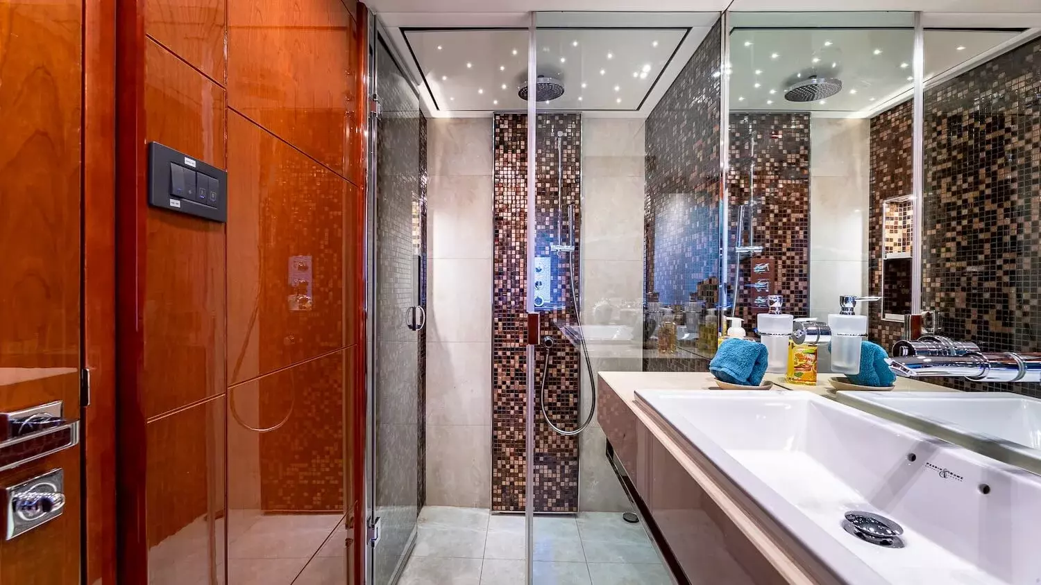 Beachfront II navigation features provide the safety, security, and smooth sailing you need for a yacht holiday that delivers. Reaching 105 feet, with an expansive deck, you and your party can enjoy endless hours of fun, entertainment, and adventure. Whether you choose to enjoy an alfresco dinner, watch the most beautiful sunsets on the horizon with a glass of champagne in hand, or take out the water toys for exciting water sport activities, Beachfront II will offer you all kinds of festivities onboard and out on the waters or on the islands you visit.