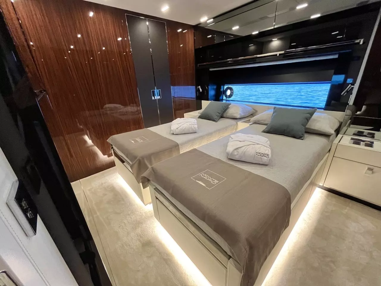 Montenapo comes with a team of 4 crew members who are dedicated to provide an exceptional experience for all guests on board. She features 4 cabins that can accommodate up to 8 guests, this motor yacht sails through the serene waters of Mediterranean.