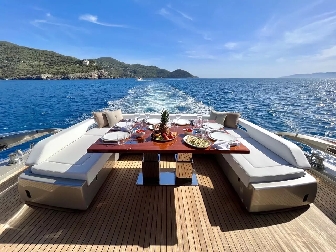 Perfect for those looking to discover Mediterranean with your family and loved ones, Montenapo offers a range of on deck activities for charters or extended escapades. Adults can relax with outdoor dining, BBQs, or sunbathing, while young guests can engage in watersports like 2 Seabobs.