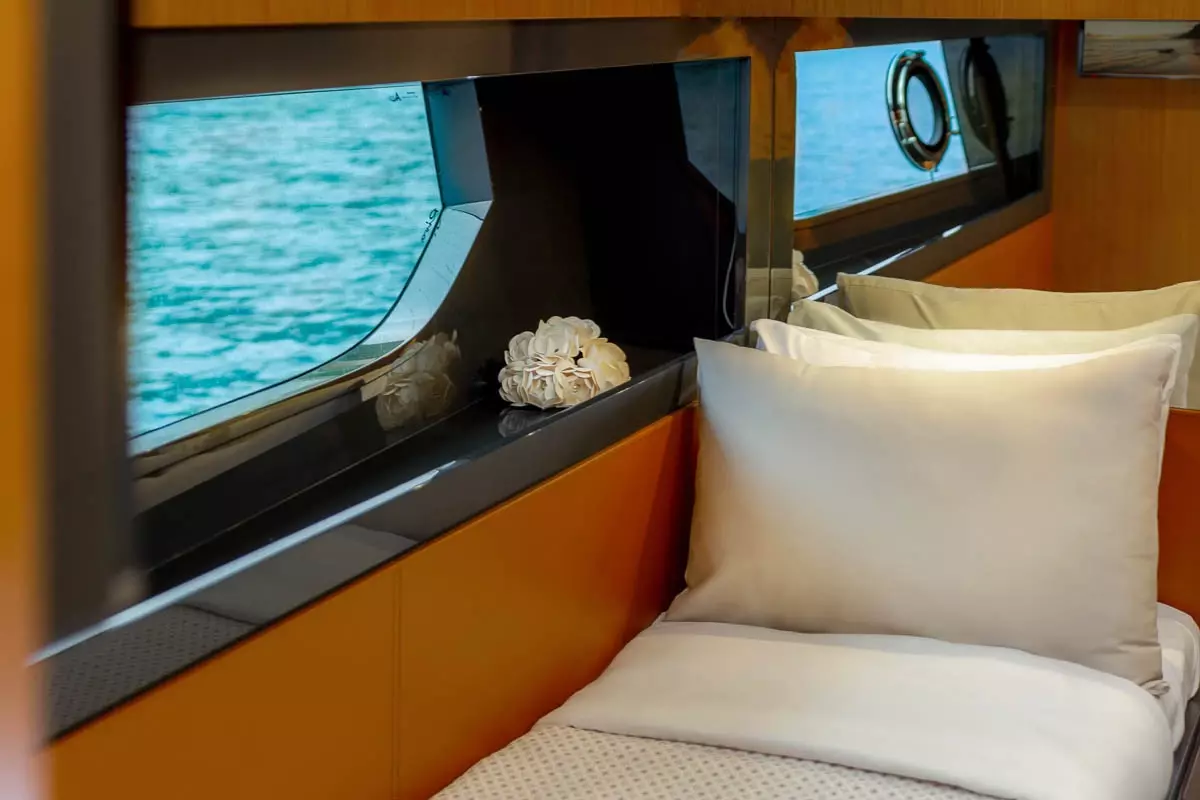 Featuring ample deck space offering opportunities for both recreation and relaxation. Spend your evenings indulging in comfort and luxury within the ensuite cabins of your own. Riva Soul stands out as a motor yacht charter known for its top notch amenities and exceptional service. And it offers an array of cutting-edge water toys!
