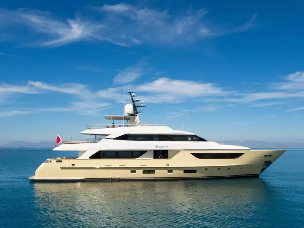 Souraya is a 125 feet superyacht built for thrill seekers in mind, wishing to explore boundaries. With 5 cabins, Souraya accommodates 12 guests, and features the latest and most exciting water toys you can find today. Built by Sanlorenzo in 2012 and refitted in 2014, adrenaline junkies will have the time of their lives on board this luxurious yacht fit for adventures on the seas of Mediterranean.