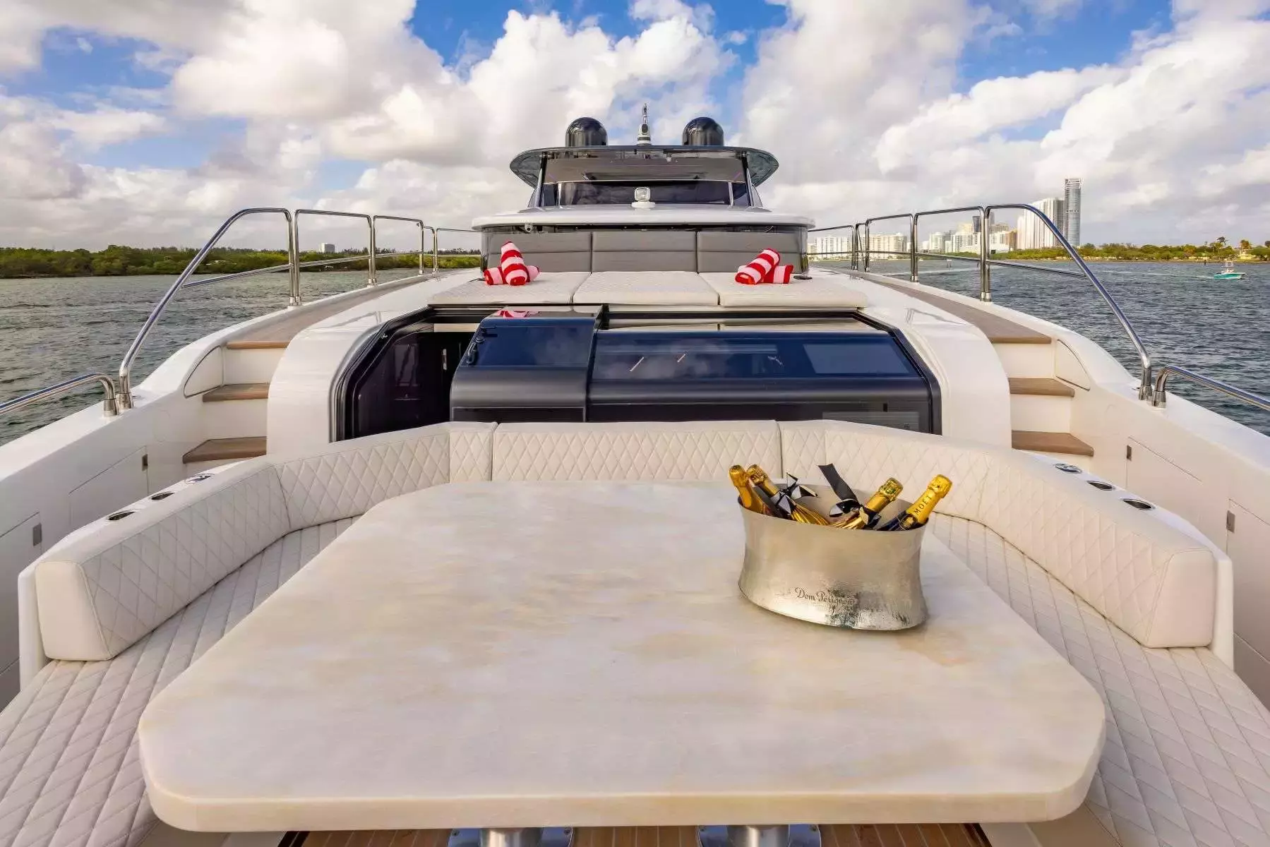 Whether on board or exploring islands there are plenty of opportunities to create unforgettable moments aboard this motor yacht. Select from an array of water toys or simply unwind and bask in the sun. The yacht also features entertainment options for day trips or cruises ensuring a celebration amidst coastlines and exotic islands.