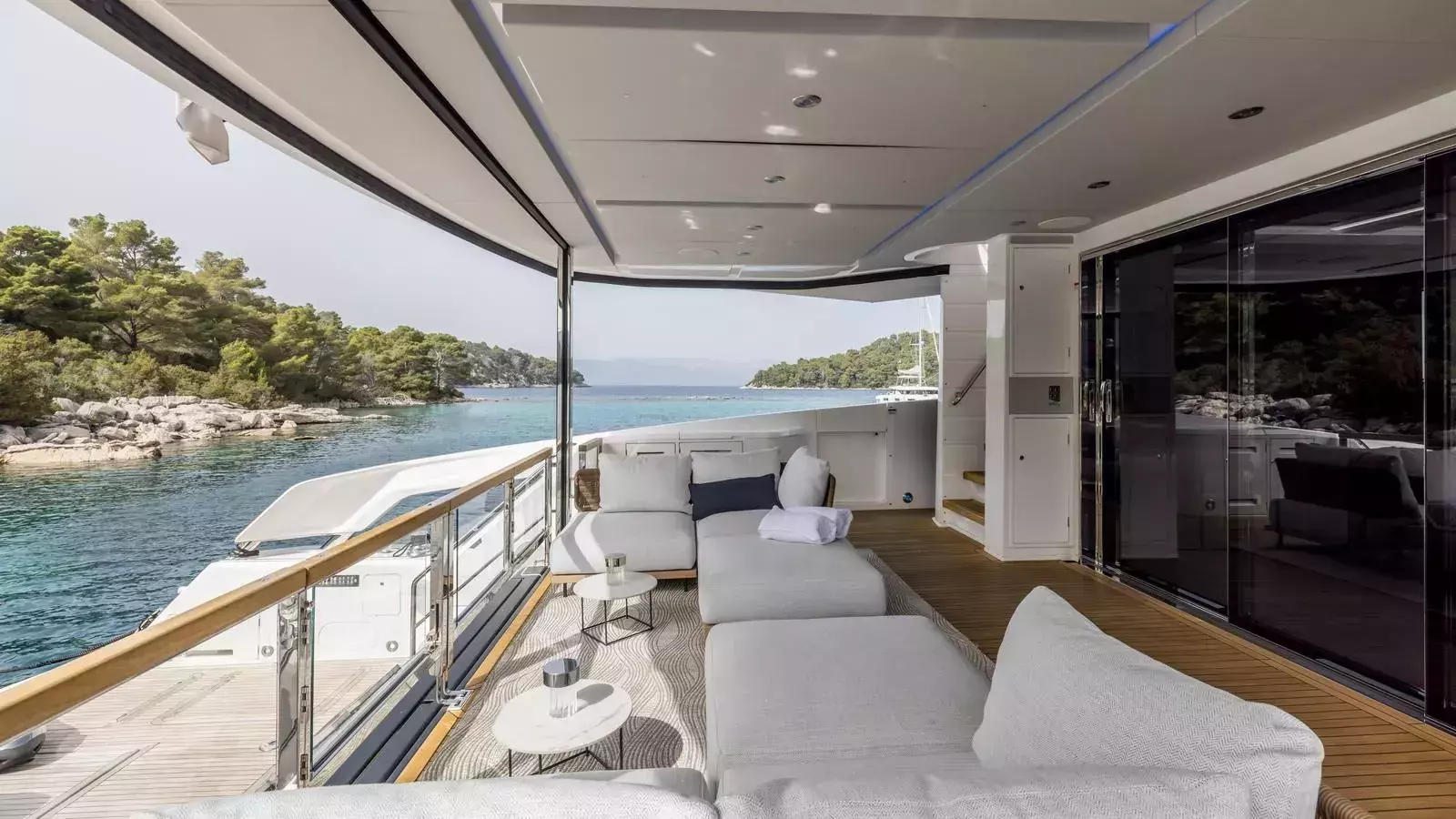 Exit is a 89 ft motor yacht beautifully constructed and built in 2023. Designed by Sunseeker, Exit has a large deck, ideal for couples, families and groups of friends looking to make and cherished memories together.