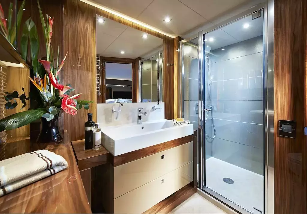 High Energy navigation features provide the safety, security, and smooth sailing you need for a yacht holiday that delivers. Reaching 92 feet, with an expansive deck, you and your party can enjoy endless hours of fun, entertainment, and adventure. Whether you choose to enjoy an alfresco dinner, watch the most beautiful sunsets on the horizon with a glass of champagne in hand, or take out the water toys for exciting water sport activities, High Energy will offer you all kinds of festivities onboard and out on the waters.