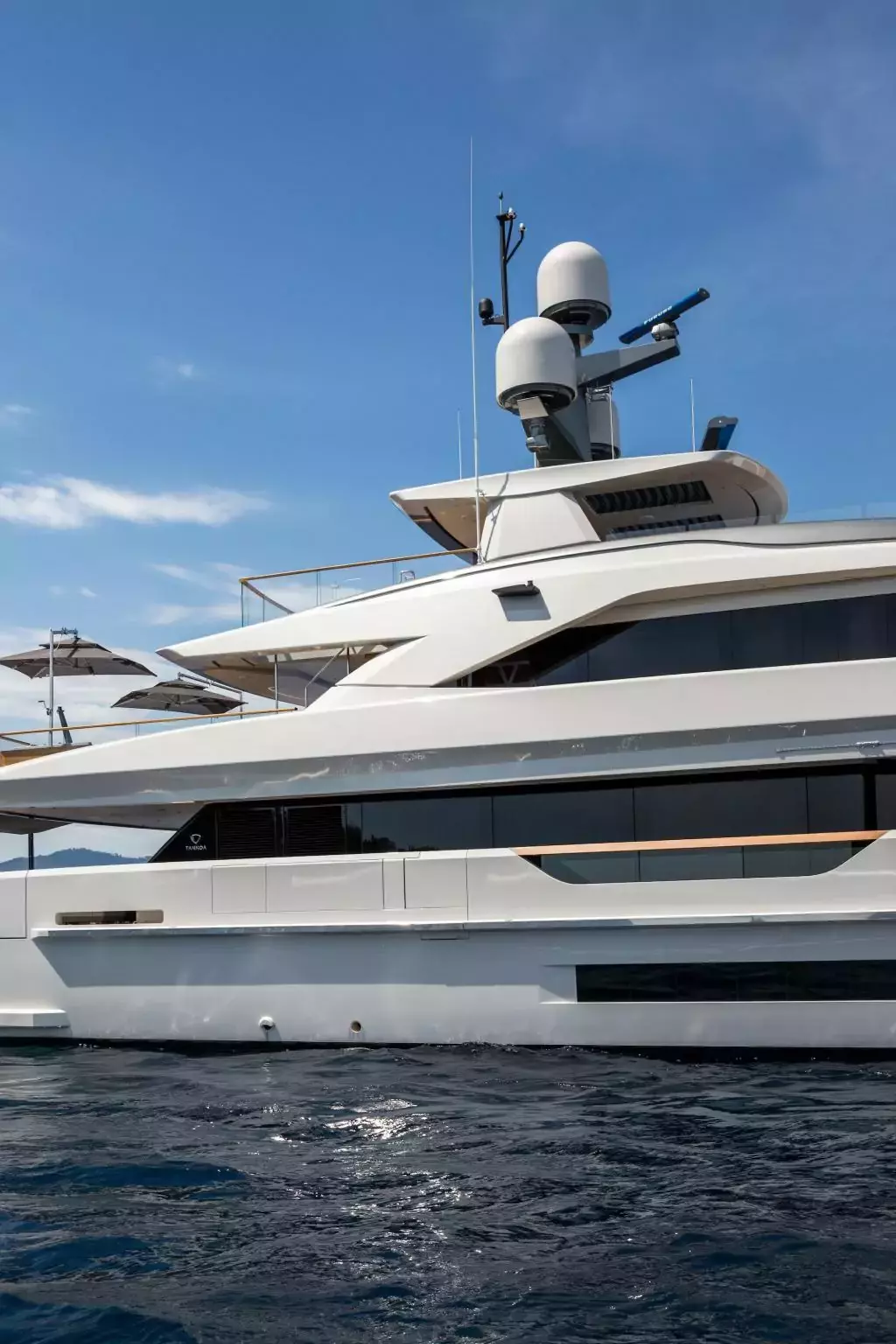 Vertige is a 164 feet superyacht built with state-of-the-art, cutting edge technology, and the latest modern advances in yacht building. With 6 cabins, it sleeps 12 guests and accommodates up to 18 people on a day charter with a professional crew of 9. Built by a renowned builder, Tankoa Yachts, the superyacht Vertige was launched in 2017 and refitted in 2020 complete with new technology and innovative features.