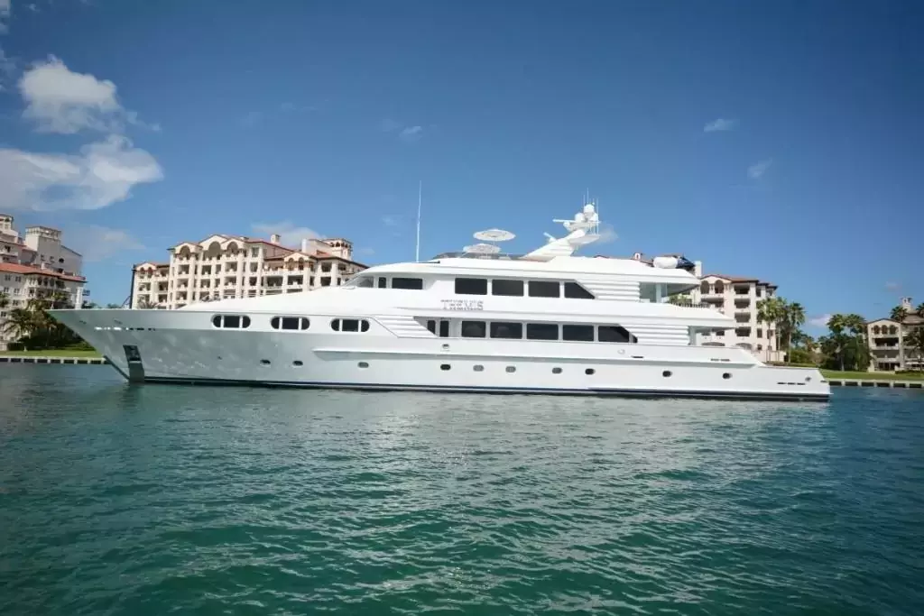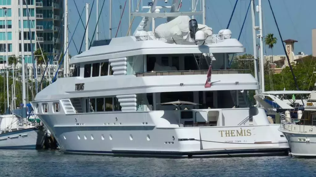 Themis is a 157 feet superyacht built for thrill seekers in mind. With 5 cabins, Themis accommodates 10 guests, and features the latest and most exhilarating water toys you can find today. Built by Trinity Yachts in 1999 and refitted in 2015, adrenaline junkies will have the time of their lives on board this luxurious yacht fit for adventures on the seas of Caribbean.