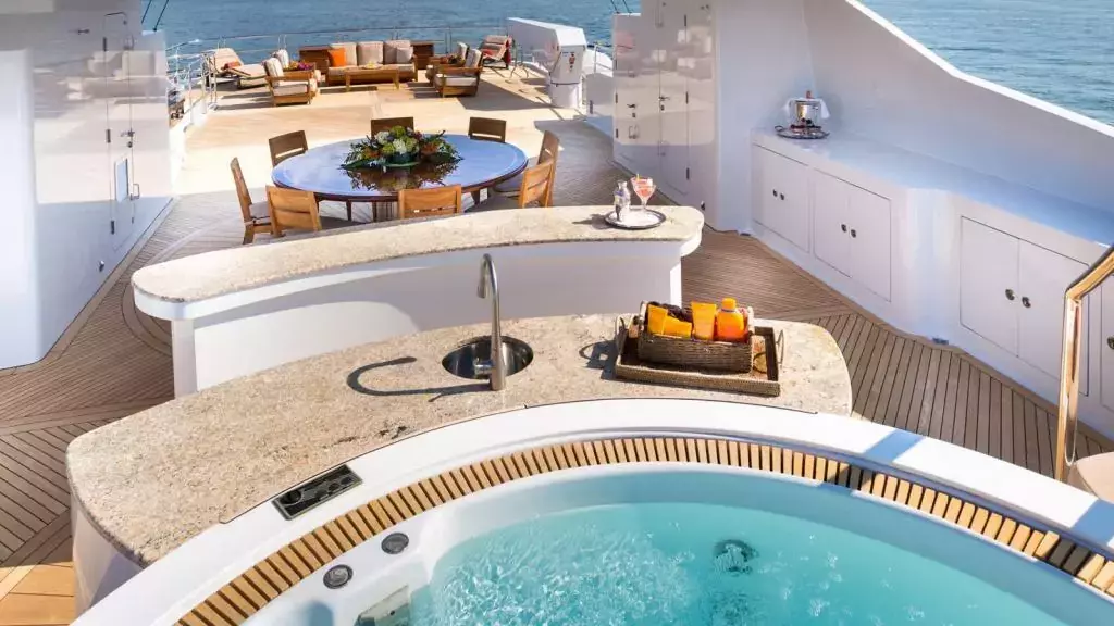 Your friendly crew of 14 is there to treat you with gourmet food on board or arrange beach BBQs with freshly-caught seafood. You can choose to simply sunbath on the deck, or join your friends of family with exciting activities out on the water. For a day trip or sunset cruise, the yacht offers entertainment and leisure features to celebrate special events, as you cruise along stunning coasts and nearby islands.
