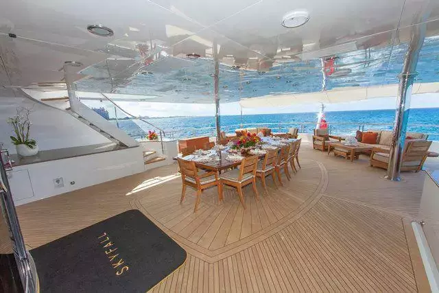 Skyfall motor yacht is based in St Georges and charters across France, Spain, Monaco, Malta, British Virgin Islands, Guadeloupe, Antigua and Barbuda, St Martin, Italy, Grenada, St Barths, Martinique, St Lucia, USVI promising some of the best attractions. Your day boat tour can include everything from water sports to snorkeling and diving, as well as visiting breathtaking sights around St Georges.