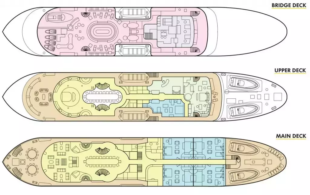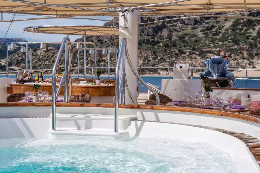 On this megayacht you will find Deck Jacuzzi, Gym, Spa, Sauna, and Cinema. With all-out lavish features, you will discover that Sherakhan is well-worth the expense.